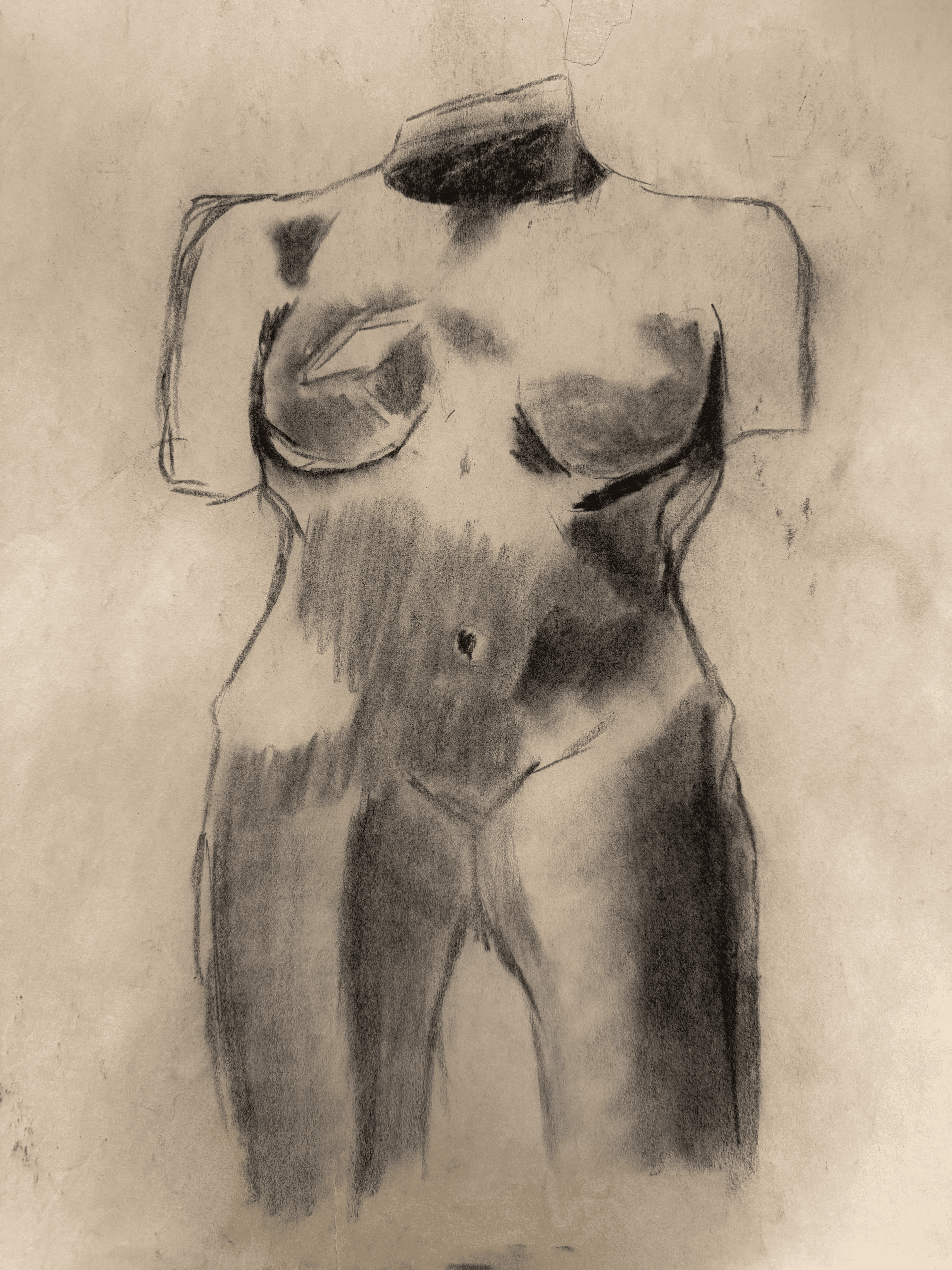 black and white charcoal on kraft paper