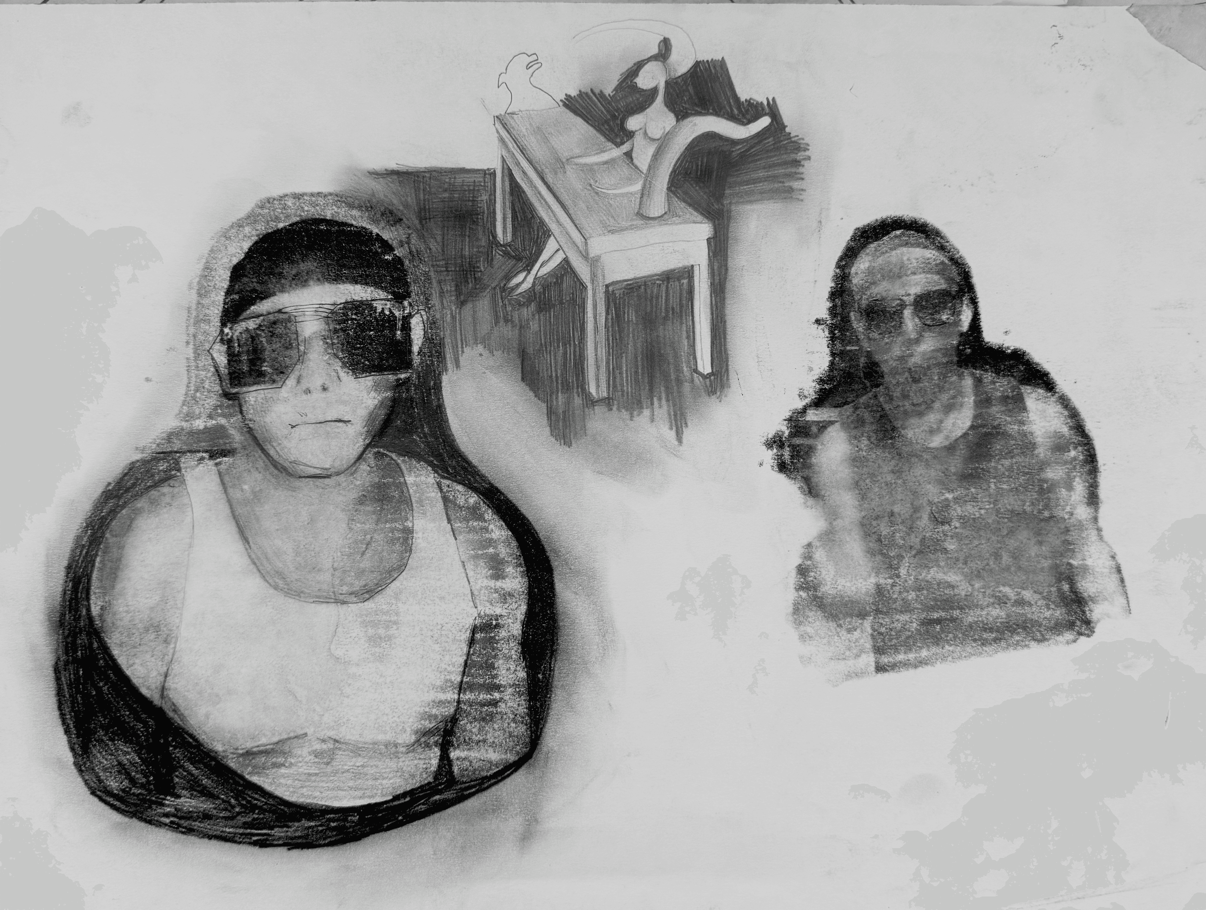 pencil and charcoal on paper